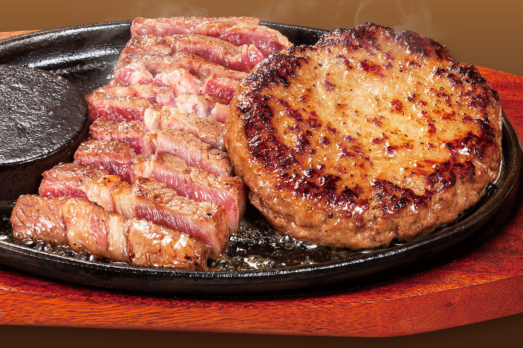 激アツステーキ130g+どんハンバーグ(デミグラスソース)