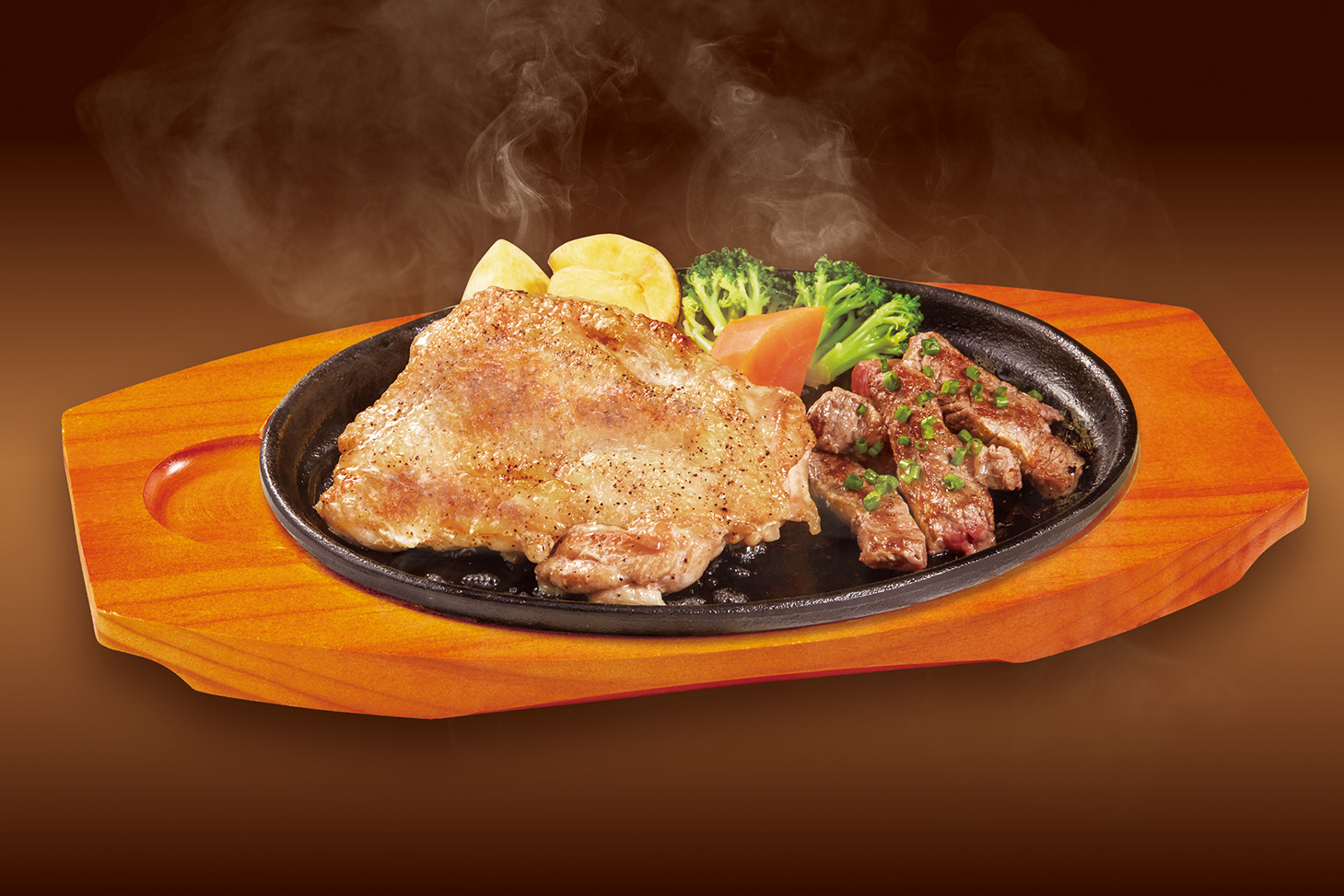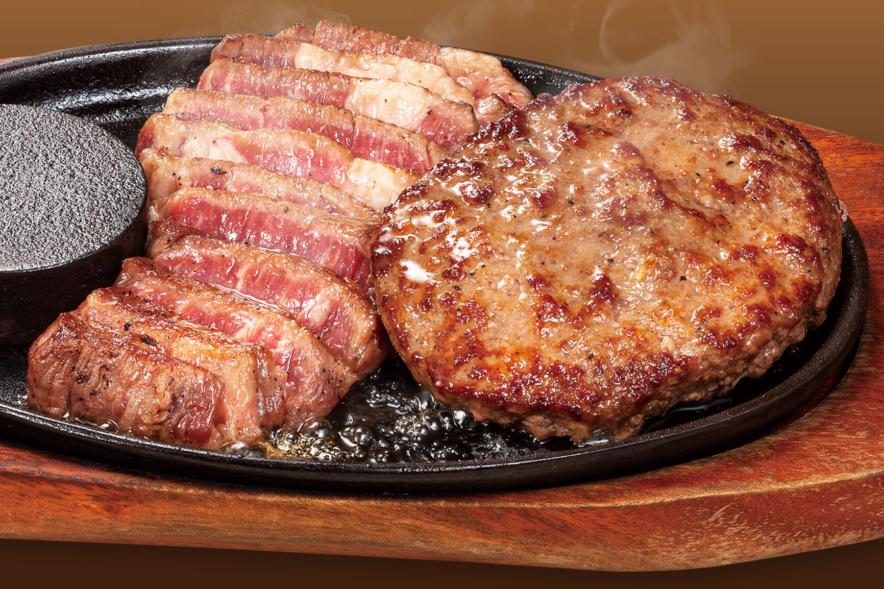 激アツステーキ130g+どんハンバーグ(デミグラスソース)