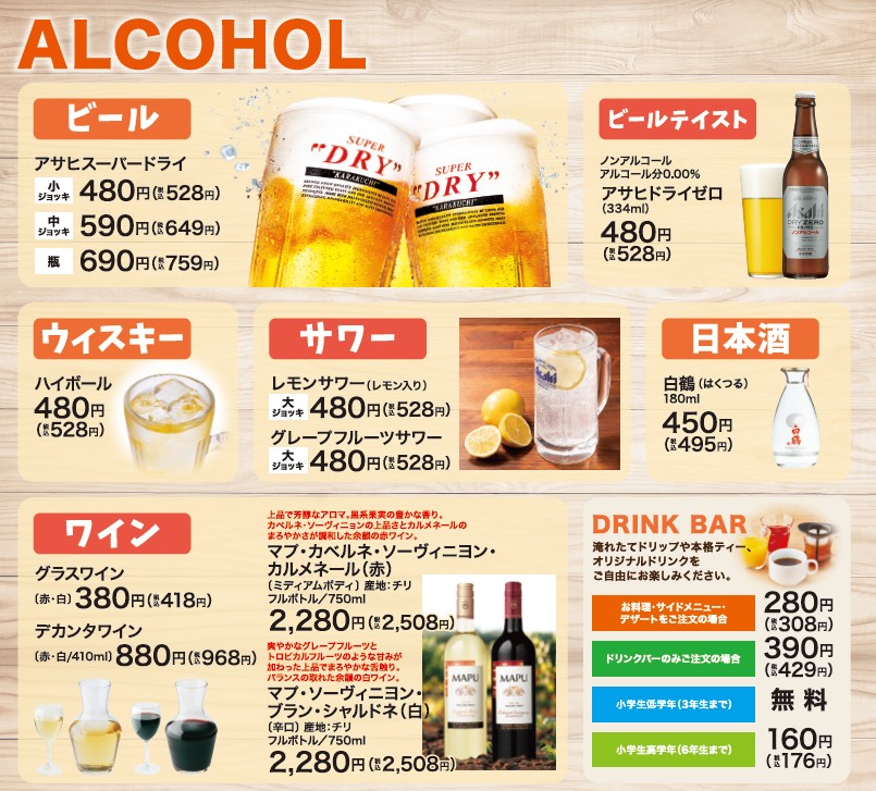 ※22時以降にご注文のお客様には、深夜料金として10%のサービス料金を加算させていただきます。